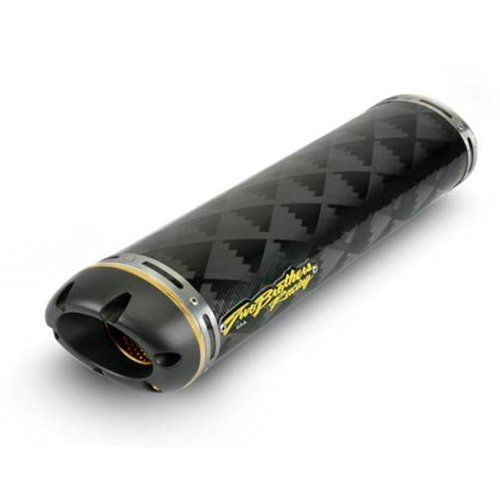 Two Brother V.A.L.E. M-5 Large Oval Carbon Fiber Slip On Yamaha Street Bike Exhaust - Size : Yamaha YZF-R6 2003-2005 . Two Brother V.A.L.E. M-5 Large Oval Carbon Fiber Slip On Yamaha Street Bike ExhaustThe M-5 Slip-On from Two Brothers Racing featuring the V.A.L.E.? System which eliminates the need for springs, resulting in a more secure mounting. Allows the muffler assembly to be positioned perfectly on the bike before all the mounting hardware is fully tightened. After perfectly aligned, the V.A.L.E.? assembly locks the muffler canister to the exhaust tube assuring a perfect, leak-free fit. The M-5 Slip-On exhaust canisters feature the highest level of quality construction and are designed to be fully serviceable in the event of damage, routine maintenance or the occasional repack. Two Brothers Racing's M series spring-mounted slip-on canisters all feature patented and exclusive lightweight thinwall die cast aluminum one-piece inlets. The exhaust note produced by all Two Brothers Top Level exhaust systems is best described as being deep and throaty without suffering from the shrill whine normally associated with other manufacturer's straight through muffler canisters. The slip-on type of system replaces your existing "s-bend" pipe and exhaust canister. Two Brothers s-bends are manufactured from .035" thinwall stainless steel. They then polish them to a mirror finish. They use only #304 stainless which will never rust.Two Brothers has been using Carbon Fiber in motorcycle mufflers since 1992. They are currently the only US Company to exclusively use Filament Wound Carbon Fiber (FWCF) on every carbon fiber muffler they sell. They draw on only the best high temperature resins, and control a proprietary lining system adopted from spacecraft, for additional heat resistance. The FWCF is continuously wound over a precision machined mandrel for a 100% seamless bond. The FWCF tube is then cured in a high temperature autoclave oven for superior strength and heat resistance. These crucial elements meld to form a precision lightweight muffl